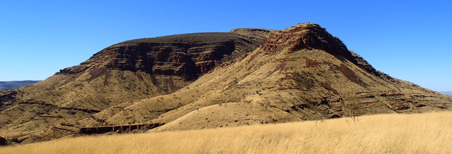 The visible horizontal iron-bearing layers of the Hamersley Range in Australia.