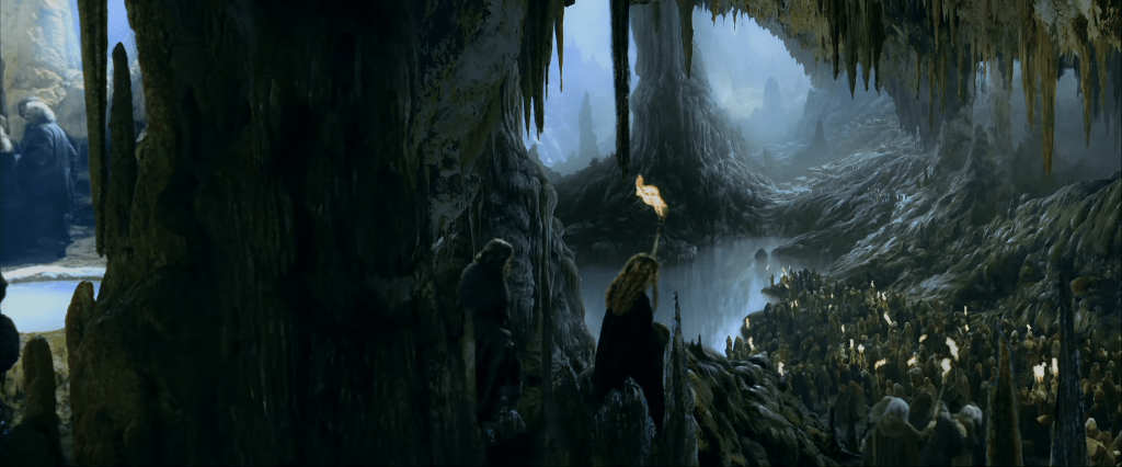 The climatic conditions of the region further clarify how the Glittering Caves could be inhabited. Situated at the foot of the White Mountains near Helm’s Deep, the area experiences cold winters, significant rainfall, and strong, channelled winds. Left entirely untouched, a limestone cavern system of this kind would be cold, damp, and subject to continuous airflow, particularly in deeper or more exposed chambers.